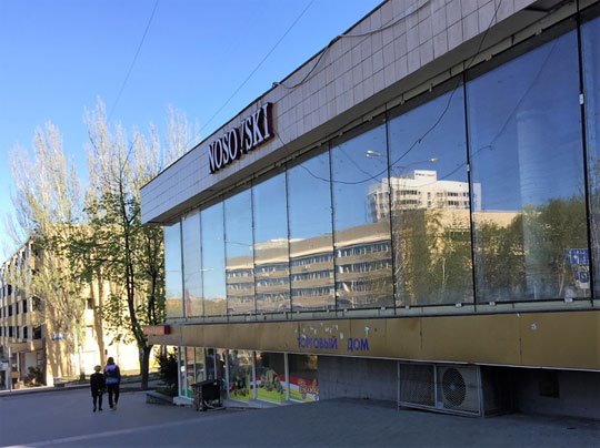 Стекла витрин некоторых магазинов забиты фанерой, таблички с фасадов здания сняты, а названия затерты до неузнаваемости. Прохожим едва ли можно угадать, что именно работало на месте заброшенного помещения до войны.