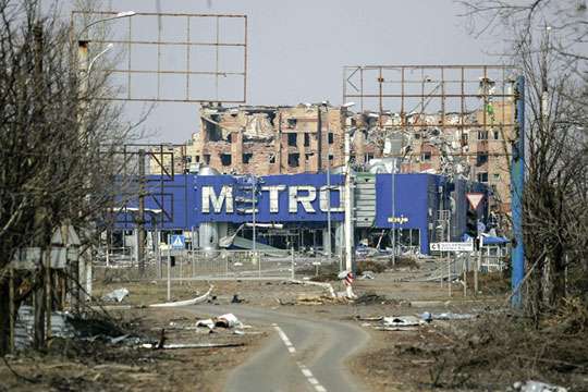 На дверях некоторых магазинов весят вывески с надписью «Распродажа». Не работает гастрономический бутик «Gourmet» вблизи улицы Набережной. В мирное время здесь продавали элитные продукты высокого качества европейских производителей. Витрины магазина завешены старыми логотипами, а помещение погружено во тьму.