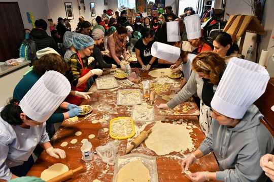Пораженная вторжением России в свою родину, Чекановская начала действовать уже на второй день войны, собрав команду добровольцев из числа украинских жителей города. Очереди за пирогами и пельменями выстраивается далеко по улице.