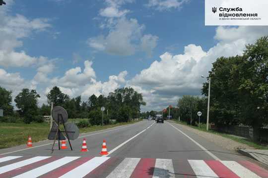 Продовжується оновлення пiшохiдних переходiв на державних автошляхах Прикарпаття. Iз 17 по 20 липня бригада працювала на дiлянцi вiд Iвано-Франкiвська до Надвiрної дороги Т-09-06 Iвано-Франкiвськ - Бистриця.