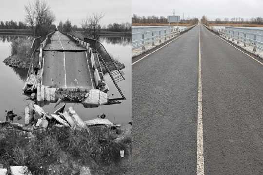 Пiсля деокупацiї на мiсцi зруйнованого мосту в груднi 2022 р. облаштували тимчасову переправу.