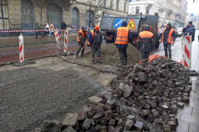 "На вiдрiзку вул. Словацького - вiд вул. Крушельницької i напрямку до вул. Дорошенка виникло просiдання дорожнього полотна, викривлення брукiвки та мозаїки. Тому наше ШРП демонтує брукiвку, вирiвняє основу i постелить брукiвку назад", - розповiдають у Галицькiй районнiй адмiнiстрацiї.