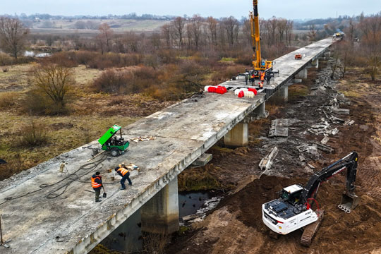 У Київськiй областi вiдновили половину зруйнованих мостiв На дорозi державного значення Т-10-05 Iванкiв - /М-07/ капiтально ремонтують 300-метровий мiст через рiчку Тетерiв, що був зруйнований у березнi 2022 р. пiд час бойових дiй. Одна залiзобетонна прогонова будова зазнала значних ушкоджень, iншi були частково пошкодженi.