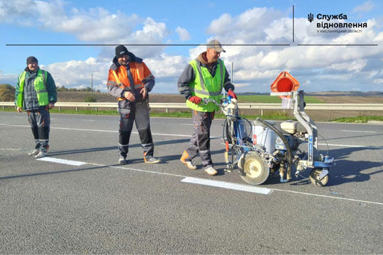 Поблизу Хмельницького поновили дорожнє маркування В межах експлуатацiйного утримання автомобiльних дорiг державного значення у Хмельницькiй областi пiдрядною органiзацiєю ТОВ "Дорожнi машини" на дорозi М-30 "Стрий - Умань - Днiпро - Iзварине", км 253+500, орiєнтовно бiля населеного пункту Мацькiвцi неподалiк колової транспортної розв'язки поновлюється горизонтальна повздовжня дорожня розмiтка.