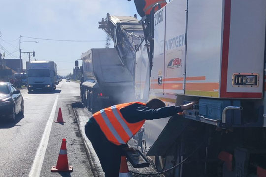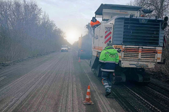 У рамках експлуатацiйного утримання ремонтують асфальтне покриття на дiлянцi з пiдвищеною iнтенсивнiстю руху - по трасi М-06 Київ-Чоп, мiж Мукачево та Ужгородом.