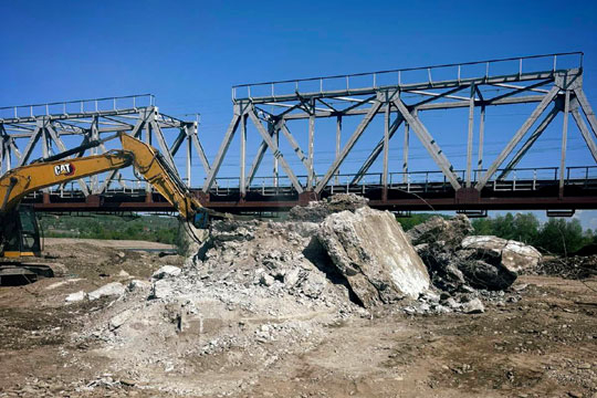 Триває демонтаж конструкцiй аварiйного мосту на Закарпаттi мiж селом Бедевля та селищем Тересва на трасi Н-09 Мукачево - Рахiв - Iвано-Франкiвськ - Львiв.