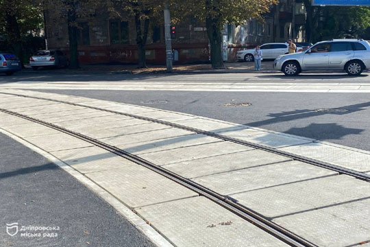 У Днiпрi оновили вже 9 трамвайних переїздiв Днiпро продовжує оновлювати трамвайнi переїзди, аби як водiї, так i пасажири електротранспорту мали можливiсть безпечно пересуватись мiстом. Нинi один з таких завершили на перехрестi вул. Степана Бандери та просп. Лесi Українки. Роботи там фiнiшували 8 вересня i того ж дня було повнiстю вiдновлено рух для транспорту.