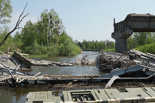 У Київськiй областi вiдбудовують зруйнований мiст Мiст через рiчку Тетерiв у Київськiй областi було зруйновано пiд час активних бойових дiй в регiонi. До кiнця року планують вiдкрити рух вiдбудованим 290-метровим мостом. Це один з наймасштабнiших об'єктiв Служби вiдновлення.