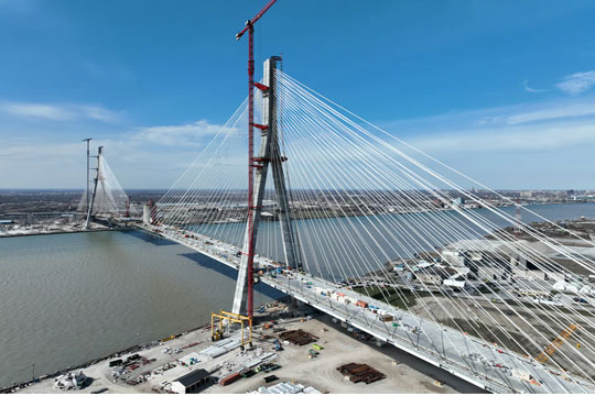 Найдовший вантовий мiст Пiвнiчної Америки з'єднає США та Канаду Джерело: Visit Website Пiсля чотирьох рокiв будiвництва завершуються роботи на найдовшому вантовому мосту у Пiвнiчнiй Америцi. Довжина мосту Гордi Хау iнтернешнел, який з'єднає США та Канаду, буде 853 м.