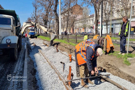 У Днiпрi ремонтують аварiйнi дiлянки трамвайних колiй У Днiпрi тривають роботи з ремонту аварiйних дiлянок трамвайних колiй. Зокрема, роботи ведуться на трамвайному переїздi на перетинi просп. Дмитра Яворницького та вул. Василя Чапленка. Це частина масштабного оновлення дiлянки руху трамвайного маршруту №1 вiд вул. Степана Бандери до вул. Пастера.