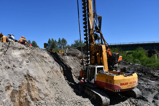 На держдорогах Тернопiльської областi проводять перше реальне будiвництво На 354 кiлометрi траси мiжнародного значення М-19 Доманове - Ковель - Чернiвцi - Тереблече набирає обертiв реконструкцiя мосту через рiчку Гнiзна. Зараз на будiвельному майданчику працює багатотонний буронабивний кран. У пробуренi свердловини пiдрядна органiзацiя розпочала заливати бетонну сумiш, щоб надалi встановити арматурний каркас майбутнiх паль.