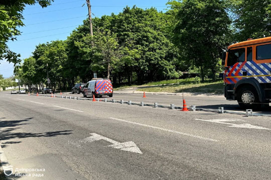 У Днiпрi встановлюють колесовiдбiйний брус для безпеки водiїв та пiшоходiв Дорожники Днiпра продовжують встановлювати колесовiдбiйний брус, аби звести аварiї з лобовим зiткненням до 0. Нинi його монтують на вул. Космiчнiй. Через те, що ця дiлянка має великий ухил i вигини дорожнього покриття, тут трапляється чи не найбiльше аварiй.