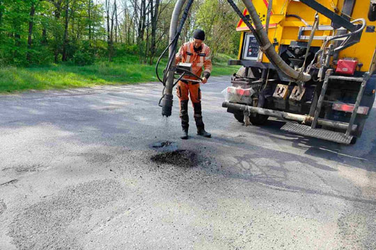 На дорогах Житомирщини проводиться лiквiдацiя аварiйних вибоїн За сприятливих погодних умов на головних маршрутах Житомирської областi проводять пiдготовчi роботи та безпосередньо лiквiдацiю аварiйних вибоїн для забезпечення проїзду.