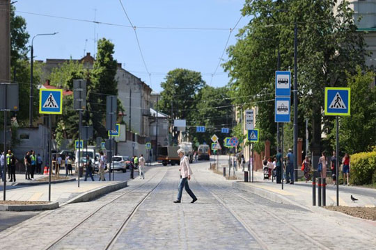 У Львовi вiдремонтували дуже погане дорожнє покриття На частинi вул. Словацького - вiд вул. Крушельницької до вул. Дорошенка - лiквiдували просiдання i ями на дорожньому полотнi та облаштували велосмугу. Як пояснили у Галицькiй районнiй адмiнiстрацiї, за рекомендацiями Львiвської асоцiацiї велосипедистiв велосмугу площею 80 кв. м вистелено "римським каменем".