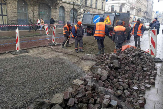 У Львовi лiквiдовують просiдання брукiвки За iнформацiєю Галицької районної адмiнiстрацiї, ремонтнi бригади ЛКП "ШРП Галицького району" проводять поточний ремонт дорожнього полотна на вул. Словацького. Зокрема лiквiдовують просiдання брукiвки i мозаїки площею 45 кв. м на дiлянцi мiж вул. Крушельницької i вул. Дорошенка. На час робiт на цiй дiлянцi може бути ускладнений рух для транспортних засобiв. Роботи триватимуть два днi.