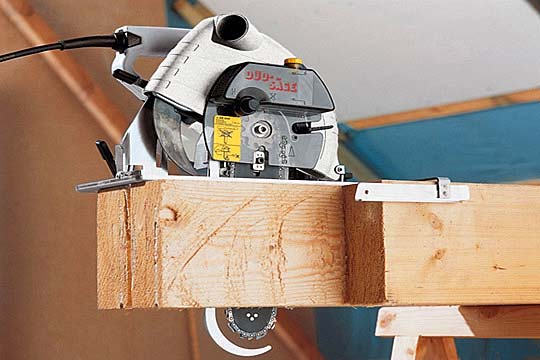 О габаритах даже нечего и говорить. Есть, конечно, в природе и такие монстры (например, Mafell FSG 240 K — пропил 240 мм; 4,35 Вт; диск 640 мм; масса 66 кг; напряжение 380 В). В крайнем случае, придётся крупной традиционной циркуляркой делать два пропила с противоположных сторон, серьёзно сражаясь за их плоскостное совпадение.