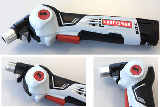 Первый — по типу угловой дрели, когда батарея вставляется в тонкую удлинённую рукоятку, которую можно полностью обхватить (Craftsman, Ryobi, MacAlister). Интересное решение реализовано в новой модификации молотка Craftsman Nextec Hammerhead G2 — там головка сделана поворотной. То есть можно забивать под разными углами относительно оси корпуса: 90 градусов, как у конкурентов, 45 градусов, а также в развёрнутом, прямом положении.