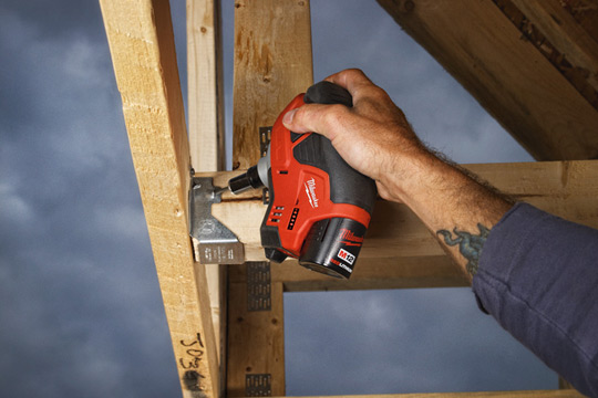Второй — скруглённый, по типу Palm Nailer (Milwaukee). Машина является чистым наладонником, только намного крупнее своих пневматических родственников. Знаменитая системная батарея М12 вставляется в корпус сзади, рабочий хобот отходит от аппарата перпендикулярно.