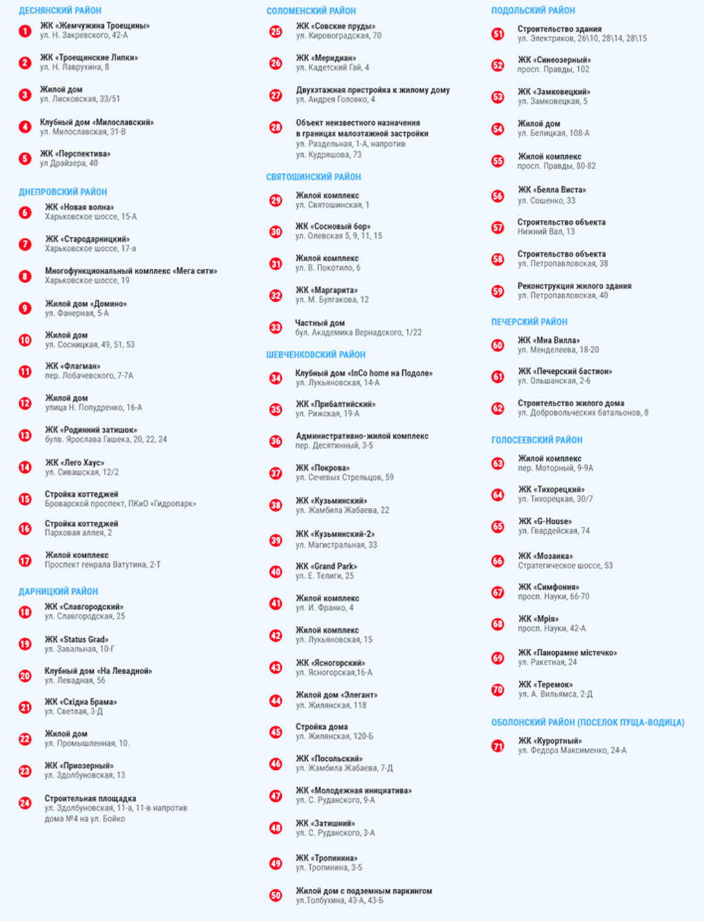 Полный перечень незаконных новостроек Киева по состоянию на ІІ квартал 2018 года (для увеличения кликните на изображениях)