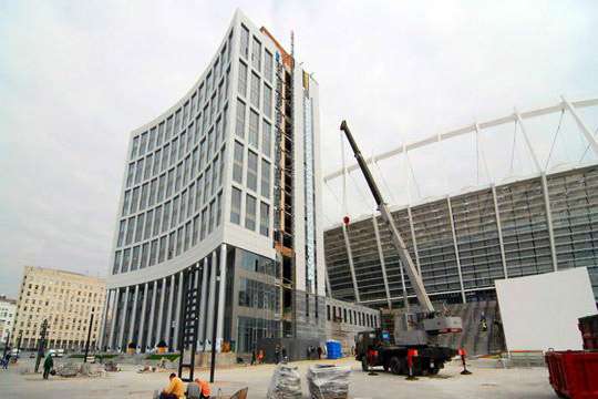 Строительством пятизвездочной гостиницы Sheraton Kyiv Olimpiyskiy на территории Олимпийского стадиона занимается "Строительная инвестиционная компания "ТМ"", подписавшая договор на управление отелем с гостиничным оператором Marriott Hotels&Resort.