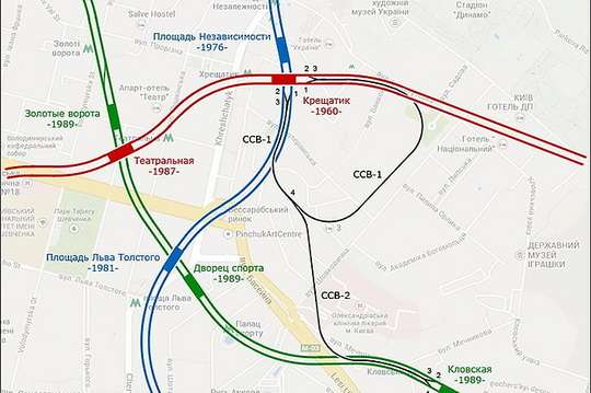 Майдан стал центральной точкой этой линии потому, что строили ее, как раз во время появления синей, Оболонско-Теремковской ветки, которая была второй по счету, после красной. То есть, переезд спроектировали сразу, в 1970-е годы. Затем, добавили и путь к зеленой, самой новой на данный момент ветке.