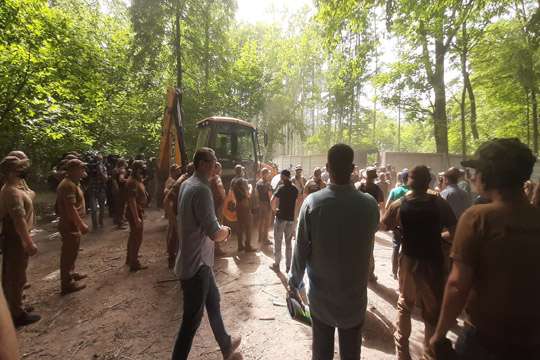 Городские службы демонтируют забор еще на одном резонансом строительстве. В этот раз - на земельном участке в лесу в Пуще-Водице.