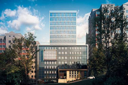 В новом бизнес-центре будет две конструктивных части разной этажности: семь этажей на фасадной части, выходящей на ул. Лабораторную, и пятнадцать этажей, выходящих во внутренний двор.