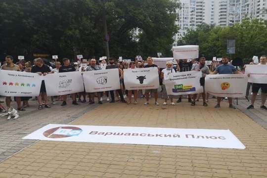 Около ста участников мирной акции стояли с плакатами "Инвесторы ЖК "Варшавский Плюс". Зе!ручники государства", "Отбелит ли Белова репутацию" (Юлия Белова - заместитель главы ФГИ), передает UBR.