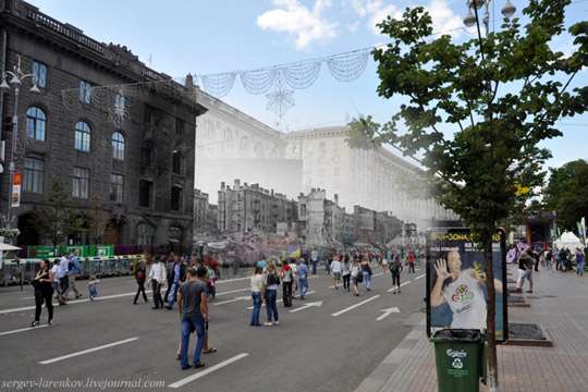 Как выяснили журналисты ProfiDom.com.ua, проект выстроен в хронологической последовательности и начинается кадрами 1911 года. На видео можно заметить, как уходит сначала имперское наследие: пропадает памятник Александру II на Европейской площади, а потом и советское: исчезают памятники Ленину на бульваре Шевченко и на Майдане.