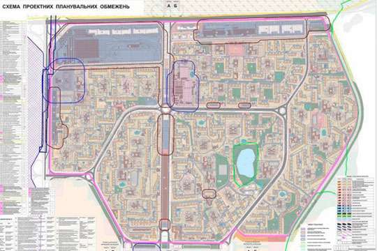На карте района (фото вверху) обведены территории, где планируется дополнительная застройка Оболони: