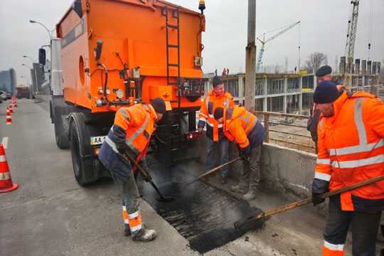 Постоянные перепады температуры воздуха (ночью - мороз, а днем - плюс) содействуют образованию мелкой ямочности на асфальтобетонном покрытии. К ремонту таких повреждений привлечено 29 единиц спецтехники КК "Киевавтодор". Это бункеры "Мадро", термобункеры и рециклеры. Кроме того, дорожные службы используют холодный асфальтобетон.