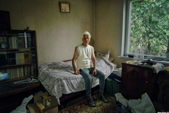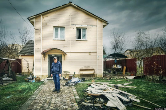 Юрий - вдовец. Он живет в красивом месте возле леса на северо-западной окраине Киева. Все в его доме - ручной работы. На веранде - мебель, которую сделал он сам. После наступления российских войск ни одно здание в окрестностях не осталось невредимым. Если в доме оставались стены и крыша, то владельцы считали себя счастливчиками.