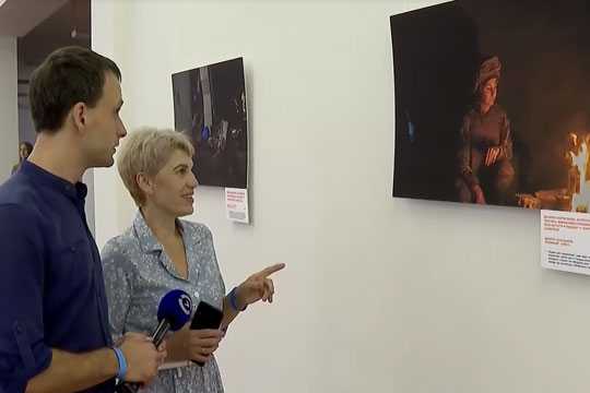 "Это Димина напарница, Нава, - рассказывает она про снимки сына на выставке. - А это его побратим, они вместе создавали репортажи".