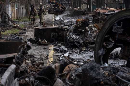 По данным лондонского Королевского института оборонных исследований, войска, двигавшиеся из Беларуси в направлении Киева, получили приказ блокировать и уничтожать "националистическое сопротивление".