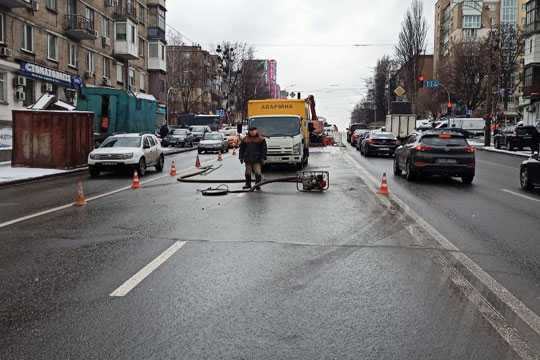 Нагадаємо, що аварiя на колекторi дiаметром 500 мм сталась 2 лютого, через що утворилось провалля на проїжджiй частинi.