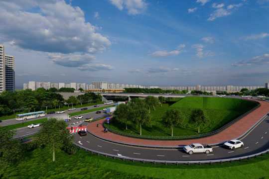 Згiдно з проектно-кошторисною документацiєю, на перетинi двох магiстралей зводитимуть розв'язку типу "неповний листок конюшини". Її проектна пропускна спроможнiсть - 11200 машин на годину. Свiтлофор на перехрестi приберуть, що дозволить зменшити затримки на транспортному вузлi.