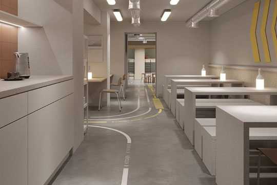Архiтектори розподiлили примiщення на зони для дiтей, дорослих та лiтнiх людей. Дизайн навмисно створювали з використанням м'яких та свiтлих вiдтiнкiв сiрого з кольоровими акцентами на пiдлозi, повiдомляє Property Times.