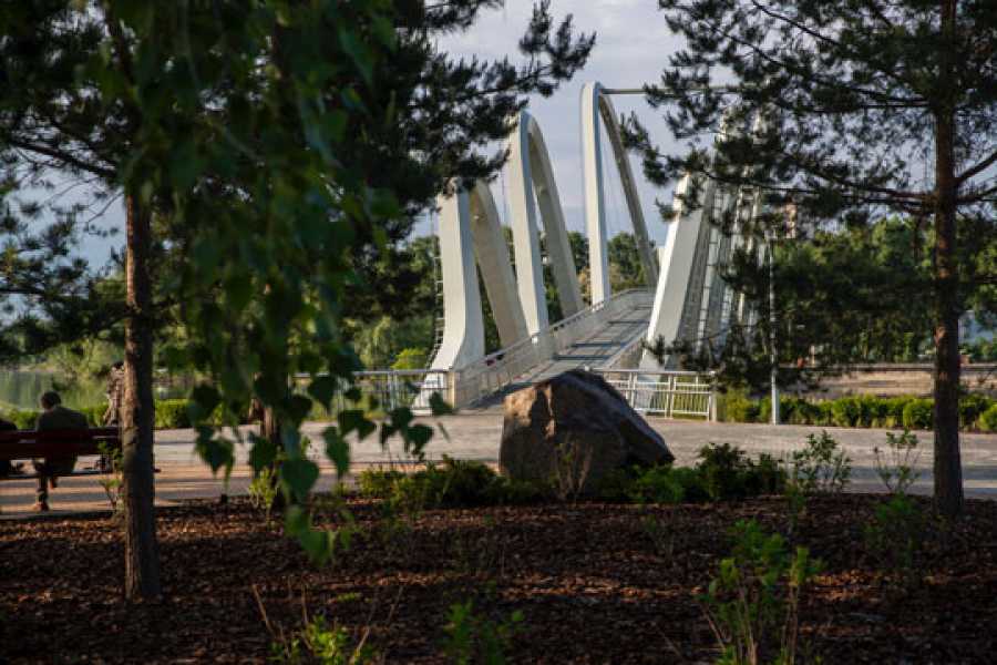 "Уже можна йти гуляти новою, великою рекреацiйною зоною столицi - на острiв Оболонський. З'єднує острiв з набережною Оболонi та парком "Наталка" дуже гарний, унiкальний з iнженерної точки зору пiшохiдний мiст. Звели його за кошти меценатiв - iноземних та українських. Конструкцiї для мосту були виготовленi ще на пiдприємствi "Азовсталь". Їх привезли до Києва буквально за кiлька тижнiв до початку повномасштабної вiйни", - зазначив Вiталiй Кличко.