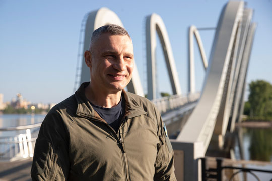 У 2024 р. Київ отримав сучасну архiтектурну перлину Мер Києва Вiталiй Кличко розповiв, як будували пiшохiдний мiст, що з'єднав Оболонську набережну з островом Оболонським. Вiдкрили його для вiдвiдування цього року. А також оприлюднив у соцмережах вiдео про те, як створювали нову зону вiдпочинку в столицi.