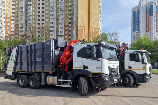 "Київкомунсервiс" отримав новi смiттєвози У 2025 р. комунальне пiдприємство "Київкомунсервiс" придбало 2 одиницi спецтехнiки для вивезення вiдходiв на територiї столицi. Загалом iз початку повномасштабного росiйського вторгнення пiдприємство оновило парк технiки 9 новими смiттєвозами. Частину з них мiсту передали як мiжнародну допомогу.