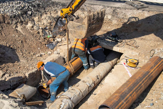 У Києвi пiд однiєю iз найзавантаженiших автомагiстралей замiнили труби без ускладнення трафiку На вулицi Солом'янськiй фахiвцi "Київтеплоенерго" замiнили частину пошкодженої труби дiаметром 400 мм. Безпосередньо пiд дорожнiм полотном переклали понад 30 м труб. Як повiдомляє комунальне пiдприємство, енергетики виконали роботи без зупинки руху на однiй iз найзавантаженiших автомагiстралей мiста.