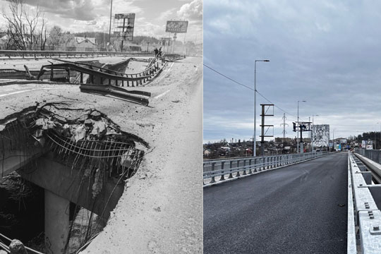 Мiж Києвом та Гостомелем повнiстю вiдновлено транспортне сполучення Транспортне сполучення мiж Києвом та Гостомелем на мiжнароднiй трасi М-07 Київ - Ковель - Ягодин повнiстю вiдновлено. Вiдкрили рух правим проїздом вiдбудованого мосту через рiчку Iрпiнь, зруйнованого на початку повномасштабного вторгнення росiї в Україну. Проїзд транспорту лiвою частиною мосту вiдкрили у сiчнi.