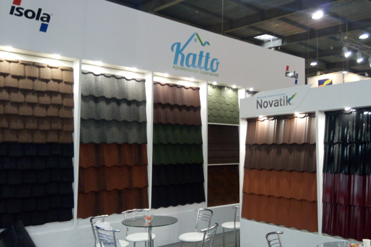Кровельная компания Katto представила на своем стенде полимерно-битумную черепицу торговой марки Isola. Как рассказал корреспонденту ProfiDom.com.ua специалист компании Алексей Бойко, норвежская компания Isola была основана еще в 1940-м году, а 1954-го года выпускает полимерно-битумную черепицу под этой торговой маркой.
