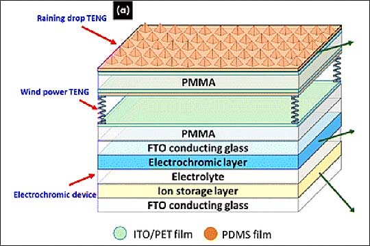 Новое стекло использует нано-генераторы, вырабатывающие ток, благодаря трибоэлектрическому эффекту: статическое электричество возникает из-за соприкосновения двух слоёв материалов. Генераторы расположены двумя слоями на поверхности оконного стекла. Они создают электрический ток, который придаёт стеклу тёмно-синий оттенок.