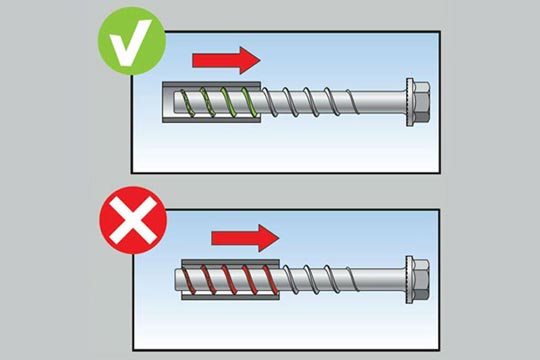UltraCut FBS II доступны в нескольких вариантах исполнения: с потайной или шестигранной головкой (со шлицем под биту или без него). При установке шурупа в базовом материале не возникает усилий распора, что позволяет уменьшить краевые и осевые расстояния. Это важно, например, при креплении поручней или перил к торцам плит перекрытий. Шурупы допущены к использованию для категорий сейсмичности C1 и C2 и отвечают требованиям одного из самых жёстких стандартов безопасности креплений (также в самых сейсмоопасных зонах).