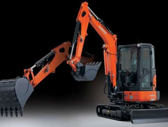 KX033-4 имеет вес всего 3 тонны, низко расположенный центр тяжести, большую и удобную кабину с эргономичным водительским сиденьем и кондиционером, систему адаптивного бульдозерного отвала.