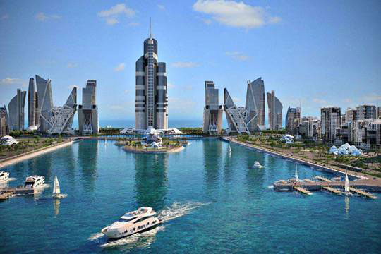 Небоскреб будет иметь 189 этажей, а сами Хазарские острова будут являться мини-городом для более, чем миллиона жителей. В планах концерна стоит также и развитие инфраструктуры островов, которая будет включать в себя помимо жилых кварталов, 150 учебных заведений, 50 медицинских учреждений и даже гоночную трассу для Формулы-1.