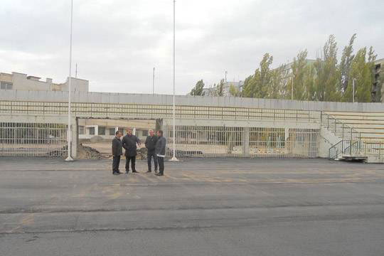 По сообщению местных СМИ, работы на стадионе начались за две недели до официального объявления победителя тендера. Проверять ход работ приезжал городской голова Владимир Николаенко, который заявил, что поверх заасфальтированной арены уложат универсальное поле для игры в футбол, гандбол, волейбол и большой теннис.
