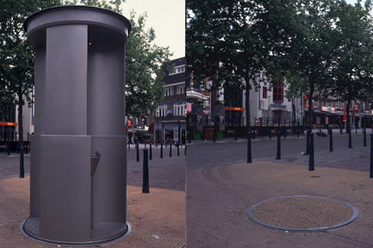 Urilift - одно из решений проблемы общественных туалетов, нашедшее поддержку во многих странах Европы. Днем писсуары скрыты под землей, а ночью поднимаются на поверхность.