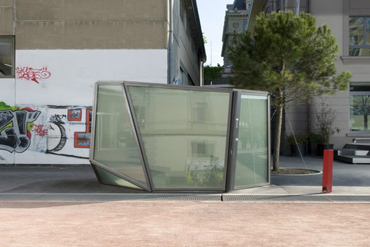 Эта уборная была разработана еще в 2011 г. в качестве прототипа общественных туалетов для установки в Устере (Швейцария). Благодаря использованию цветных алюминиевых полос уборную можно адаптировать к любому окружению.